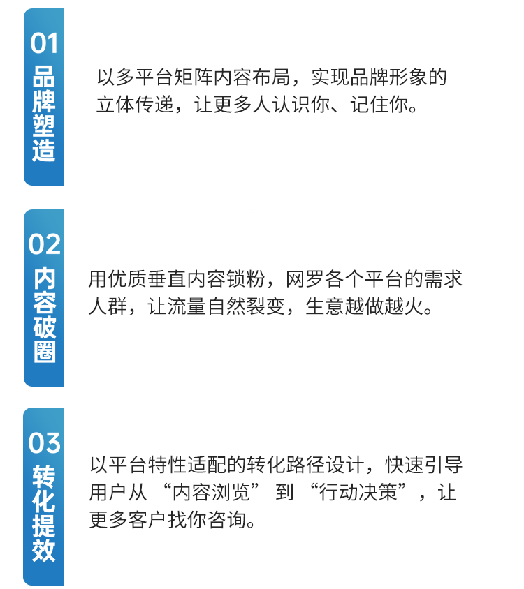 从用户认知、兴趣到转化全生命周期覆盖,通过做好短视频的账号标签,并且植入我们的产品关键词,让对我们产品感兴趣有需求的客户能看到我们公司的信息,通过在各大平台发布与品牌产品紧密相关的高质量、视觉吸引力强的短视频内容,不仅吸引了高质量客户,还提升了品牌知名度。